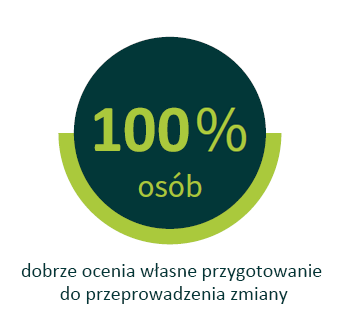Niemal 100% osób na wyższych stanowiskach, bezpośrednio zaangażowanych w przeprowadzanie zmian w organizacji bardzo dobrze ocenia swoje przygotowanie do zarządzania tym procesem, a blisko 90% z nich jest zadowolonych z efektów wprowadzonych usprawnień.