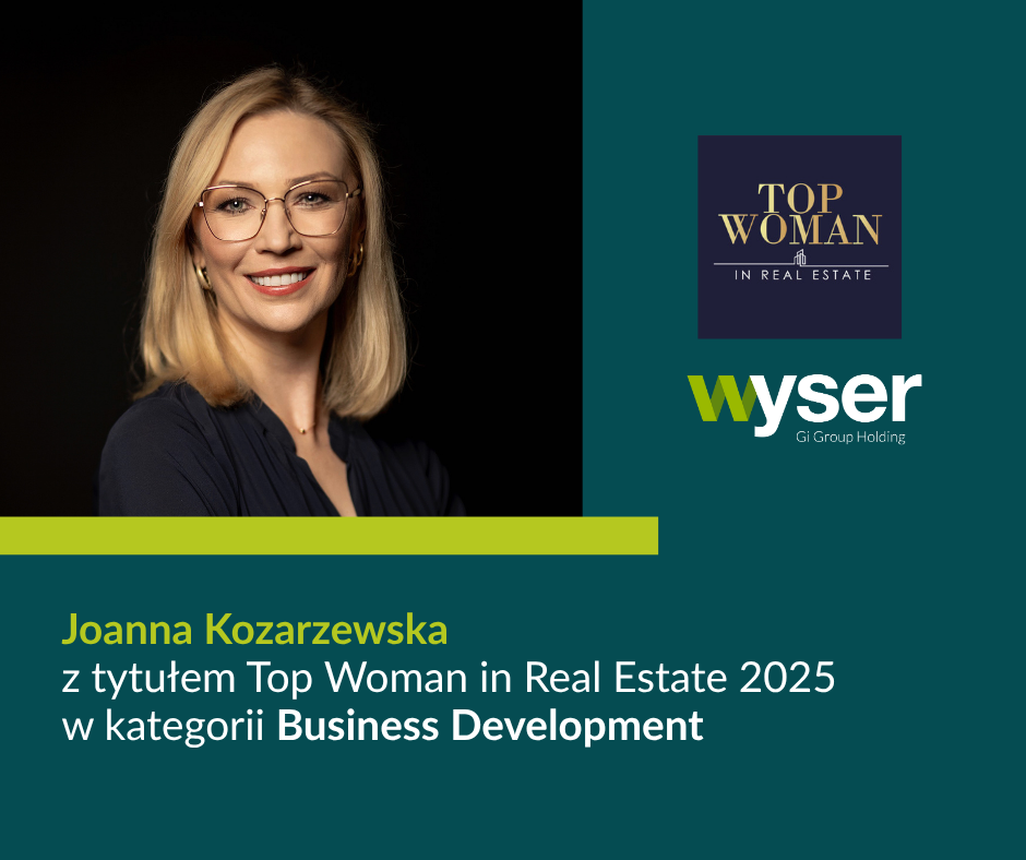 Joanna Kozarzewska, Senior Partner, Head of Real Estate & Construction w Wyser, została wyróżniona w konkursie Top Woman in Real Estate 2025 w kategorii Business Development.